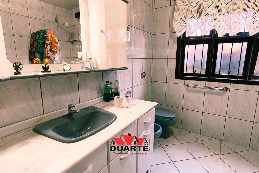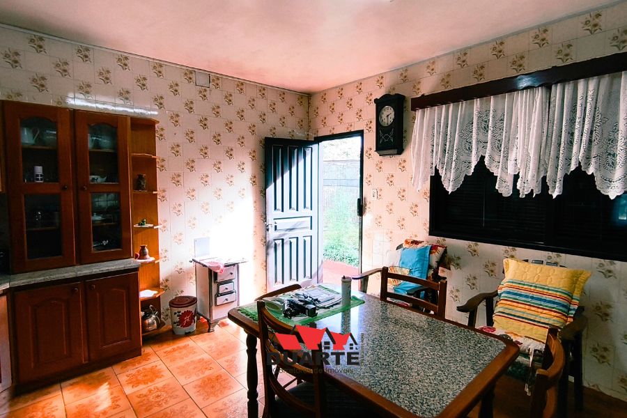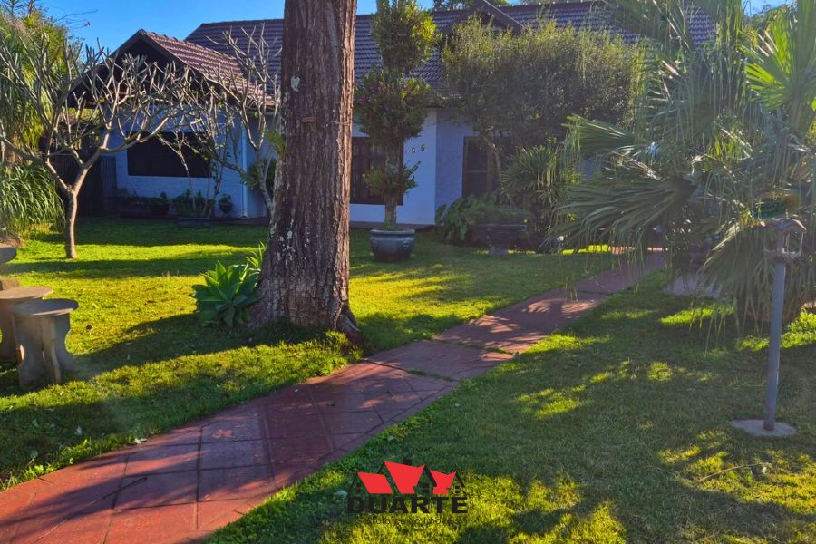 Com 3 quartos amplos, 2 banheiros, 3 salas, 2 cozinhas, área de serviço, ampla garagem, sótão, área gourmet, belo e amplo jardim com gramado e arborizado.